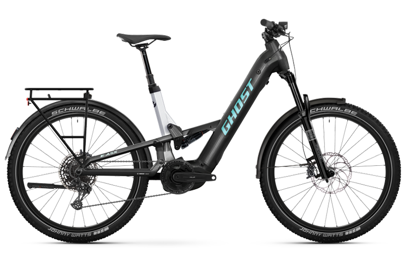 Perfekt für den Alltag – und die Flucht daraus. Das GHOST E-ASX Universal EQ ist ein echtes Crossover E-Bike, geeignet für die letzte Meile in der Stadt, genauso wie für den Offroad-Einsatz und Micro Adventures. Mit seinem geradlinigen, kantigen Design ist dieses vollgefederte E-Mountainbike ein echtes Fashion Statement. Dank Beleuchtung, Schutzblechen und Gepäckträger bist du für jede Mission gerüstet – egal ob im Großstadtdschungel oder auf unwegsamen Waldwegen. Die 160mm Federweg vorne und 150mm hinten sind eine echte Kampfansage an Kopfsteinpflaster, Bordsteine und Wurzeltrails, während der Bosch Motor und der 800WH Akku für die notwendige Power sorgen. Möge das Abenteuer beginnen!
